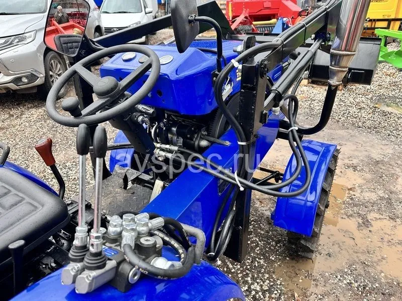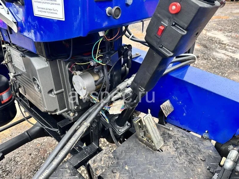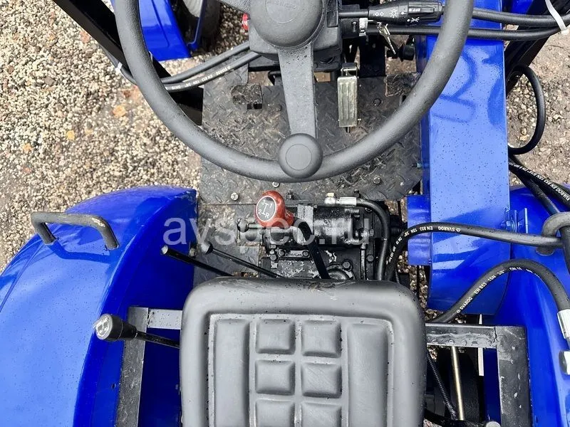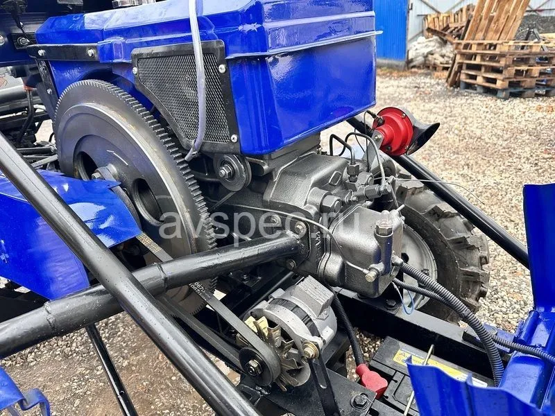 Одноцилиндровый двигатель на дизельном топливе обеспечивает достойную мощность в 24 л.с. Трансмиссия, подобная полноразмерным тракторам, в совокупности с усиленной задней осью делает его еще более надежным и удобным для выполнения различных сельскохозяйственных работ. Привод трактора ременной.