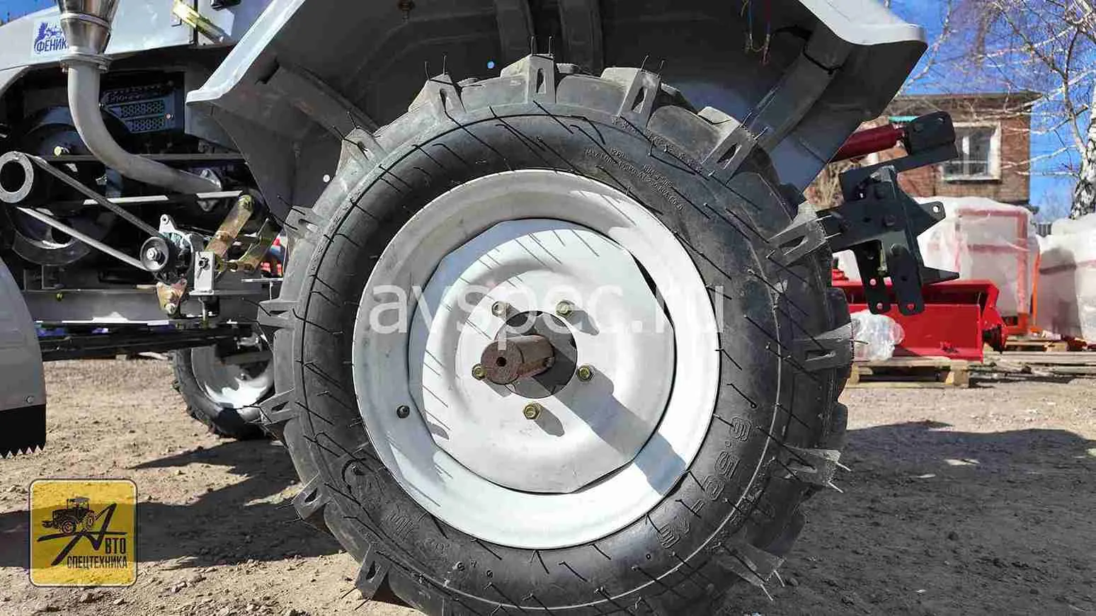 Колесная формула 2х4 обеспечивает отличную проходимость. Регулируемая колея (1300-1500 мм) — маневренность даже на тесных участках. Передние колеса 5.00-12, задние 6.50-16. Сцепление с грунтом превосходное.